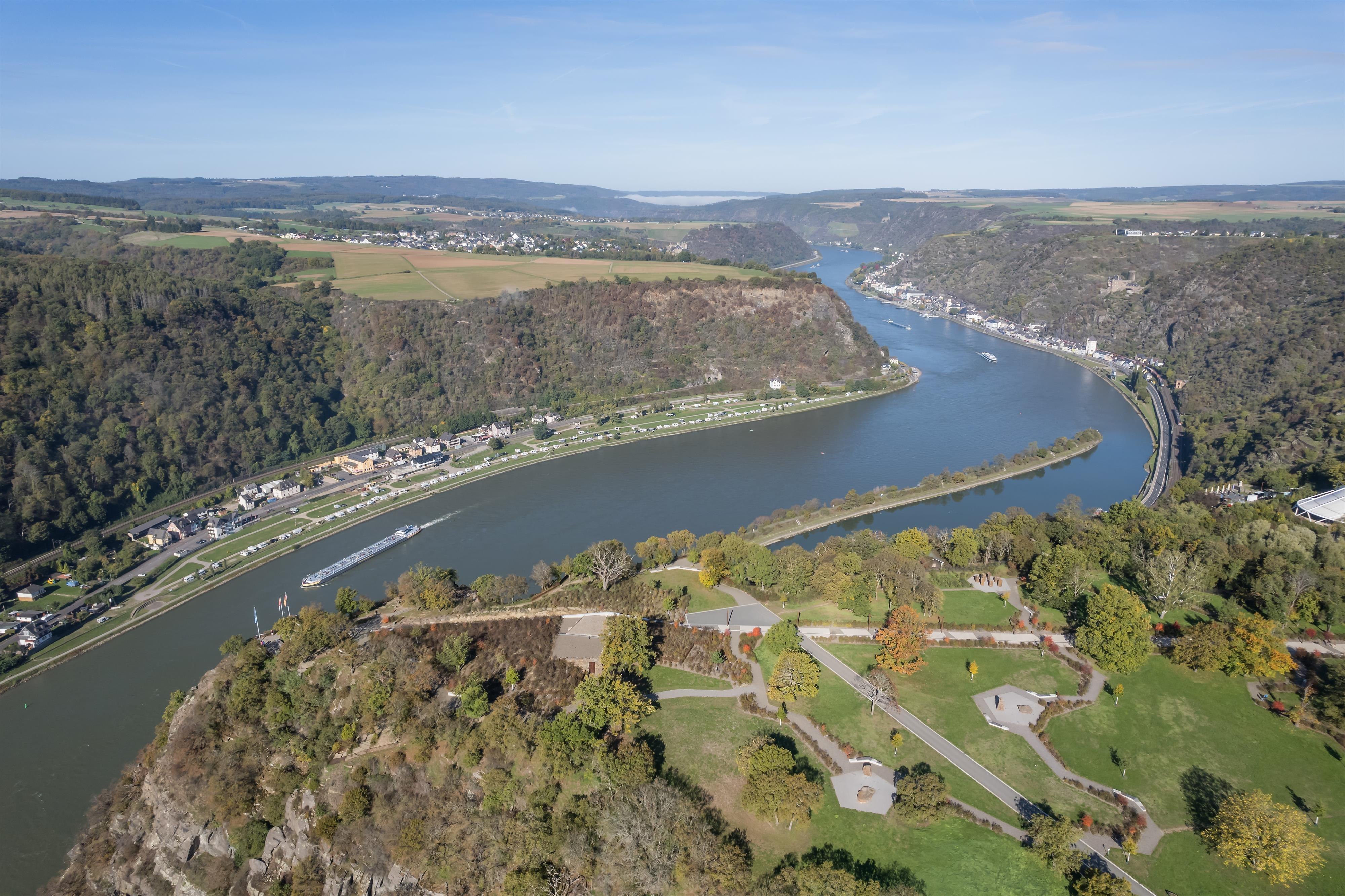 The 125-meter-high slate rock (193.14m above sea level) is geologically about 4 million years old and has been the center of Rhine romanticism since the 19th century. The Rhine is only 175 meters wide here. Correspondingly, the current is quite strong. An additional danger in the past were the rock reefs in the water, which placed ships in great peril. Many ships sank, and many people lost their lives. The word Loreley comes from the words "Ley"=rock and "Loren"=to listen. This was probably derived from the rushing of the rapids and the hum of the multiple echoes in the narrow section of the valley.