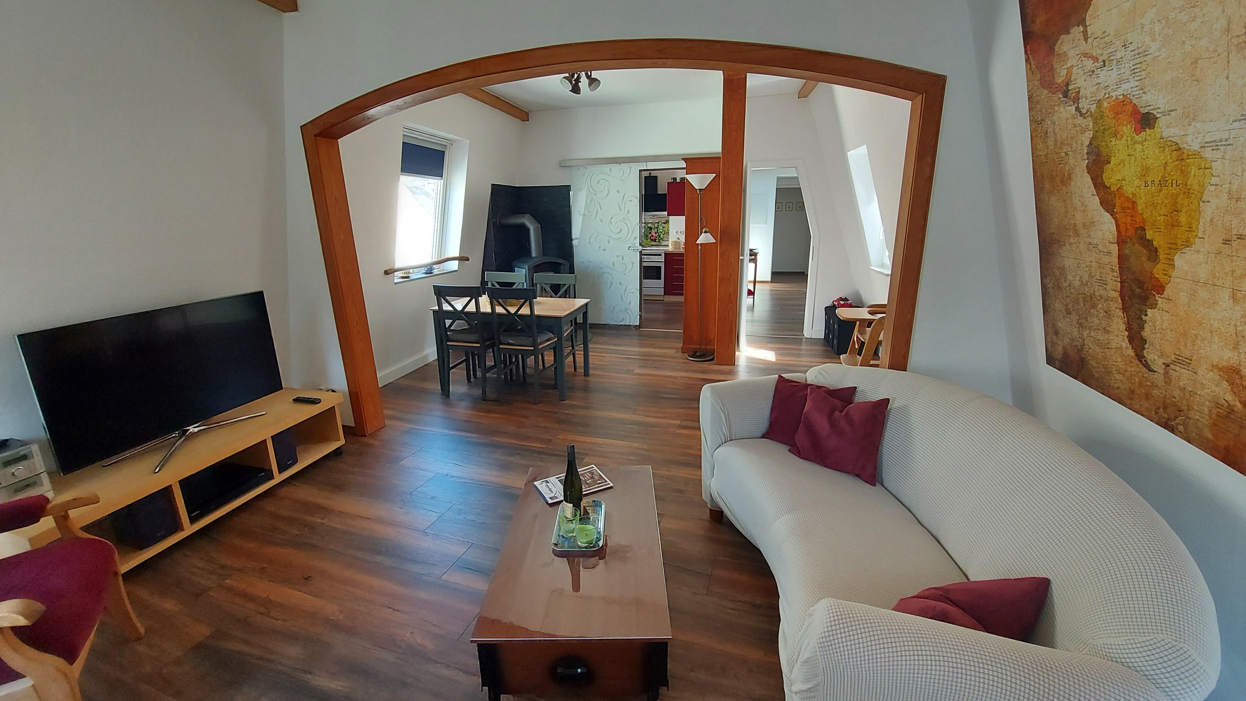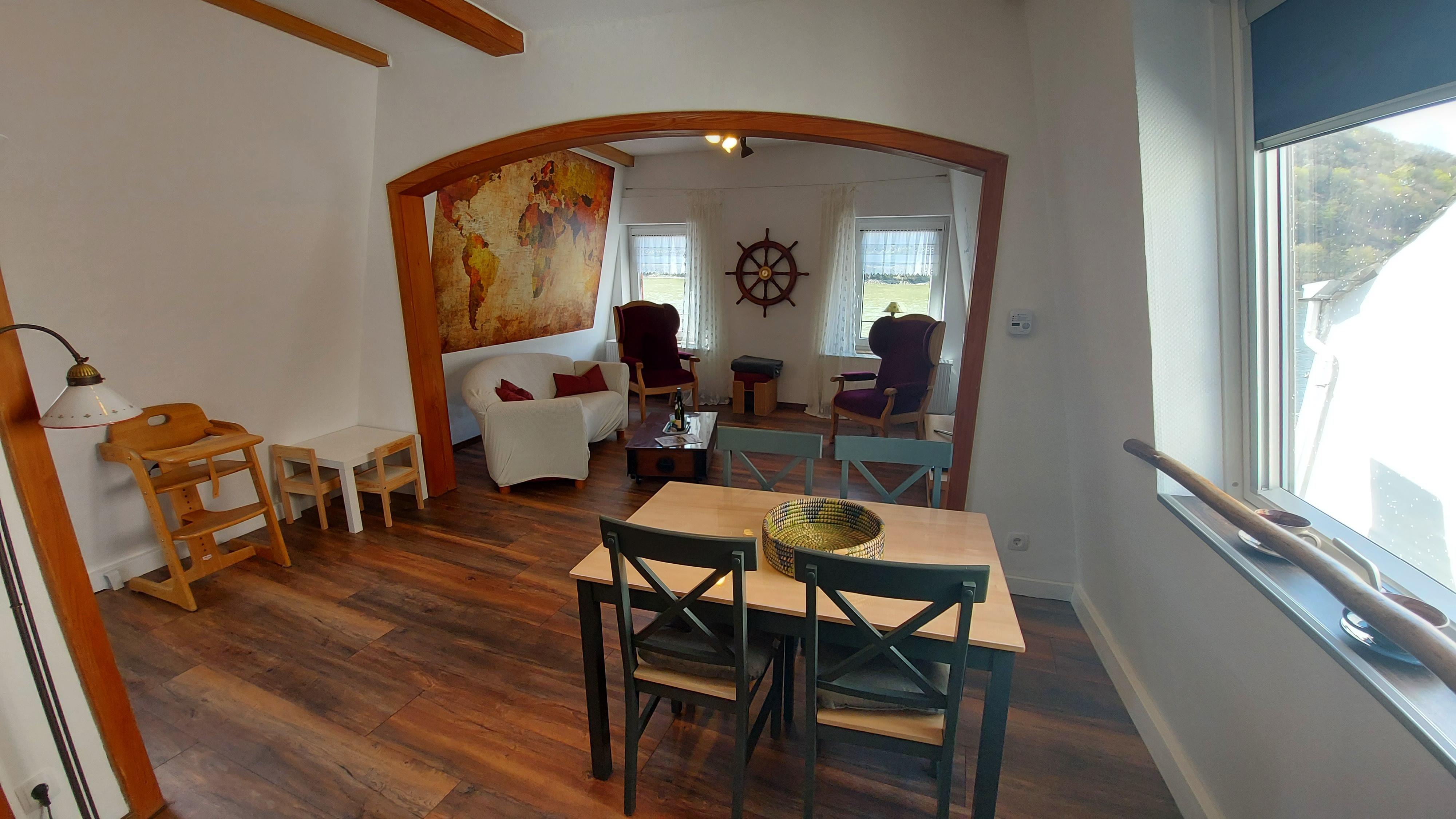 Nos appartements "Liebenstein" et "Sterrenberg" sont récemment rénovés et très bien équipés. Séjour et salle à manger avec vue sur le Rhin. Poêle en bois pour des moments agréables en automne et en hiver. Les familles avec enfants sont les bienvenues.