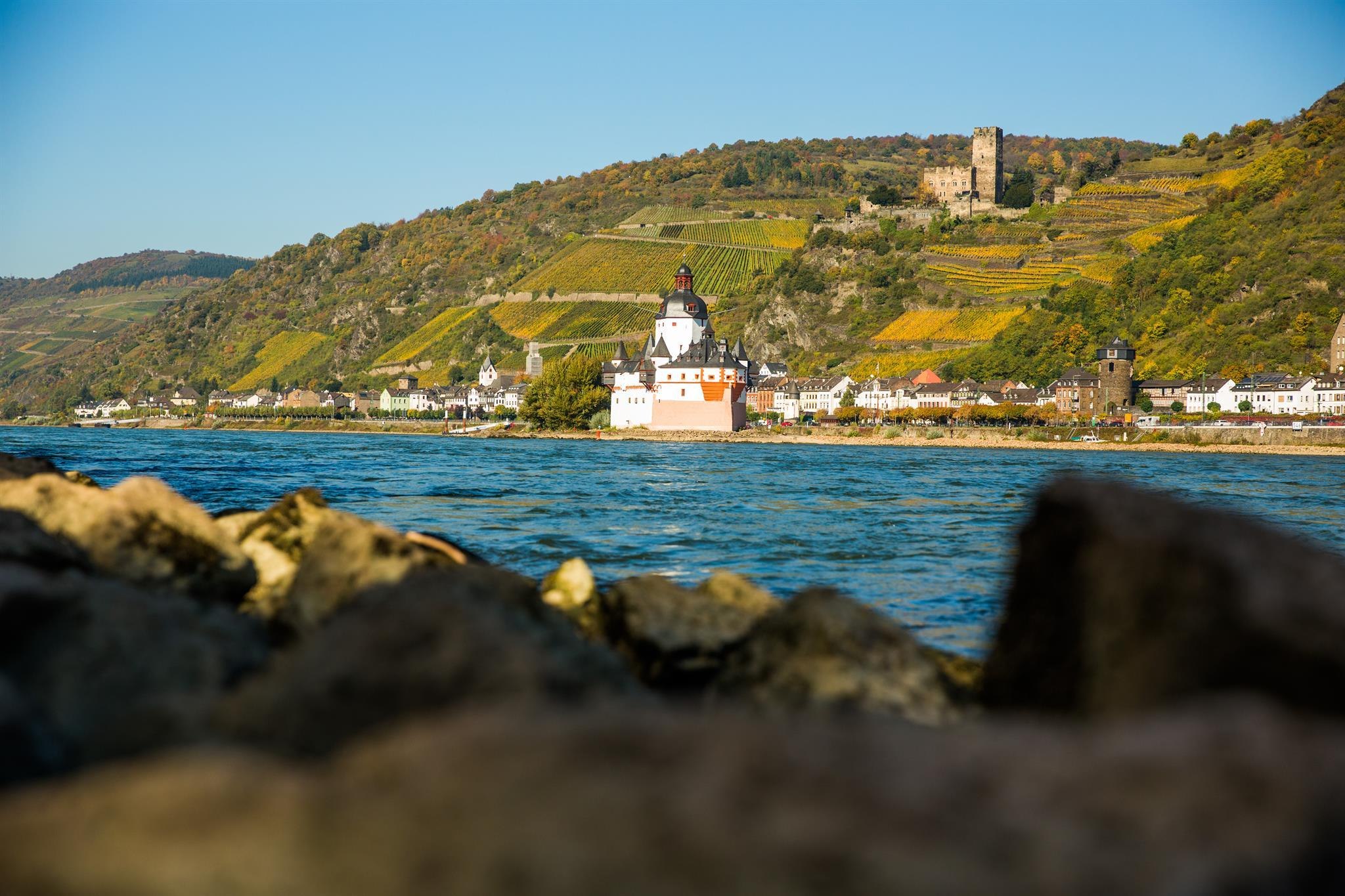 Une petite navette fluviale transporte les visiteurs depuis Kaub jusqu'à « le navire de pierre » en toute sécurité. Les horaires de ferry sont disponibles sur le site web de la direction générale du patrimoine culturel : https://tor-zum-welterbe.de/pfalzgrafenstein