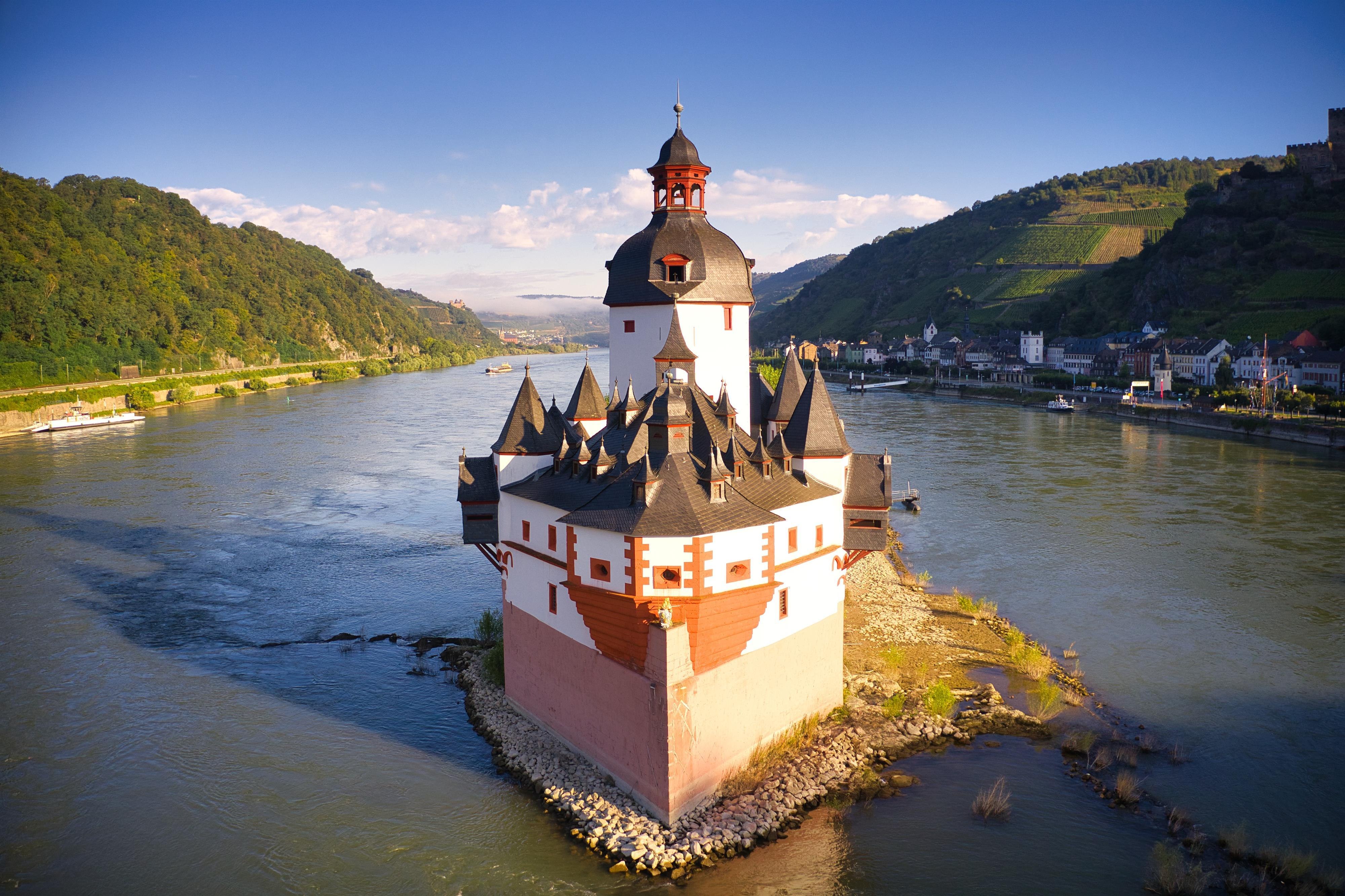 Que le Pfalzgrafenstein ait autrefois fait partie de l'un des postes de péage les plus lucratifs du Rhin se devine par sa situation :