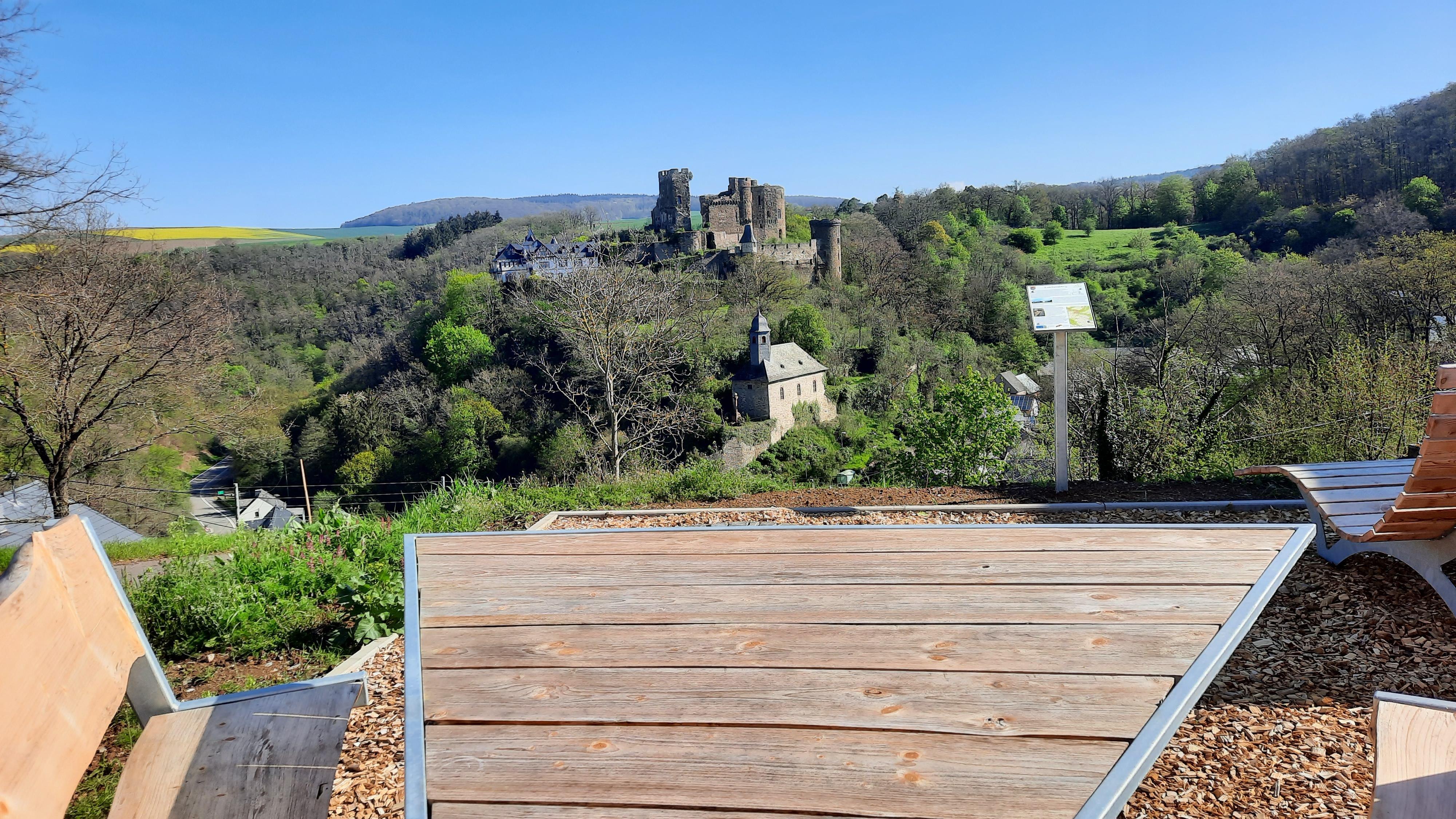 Ruhebank mit Burgblick