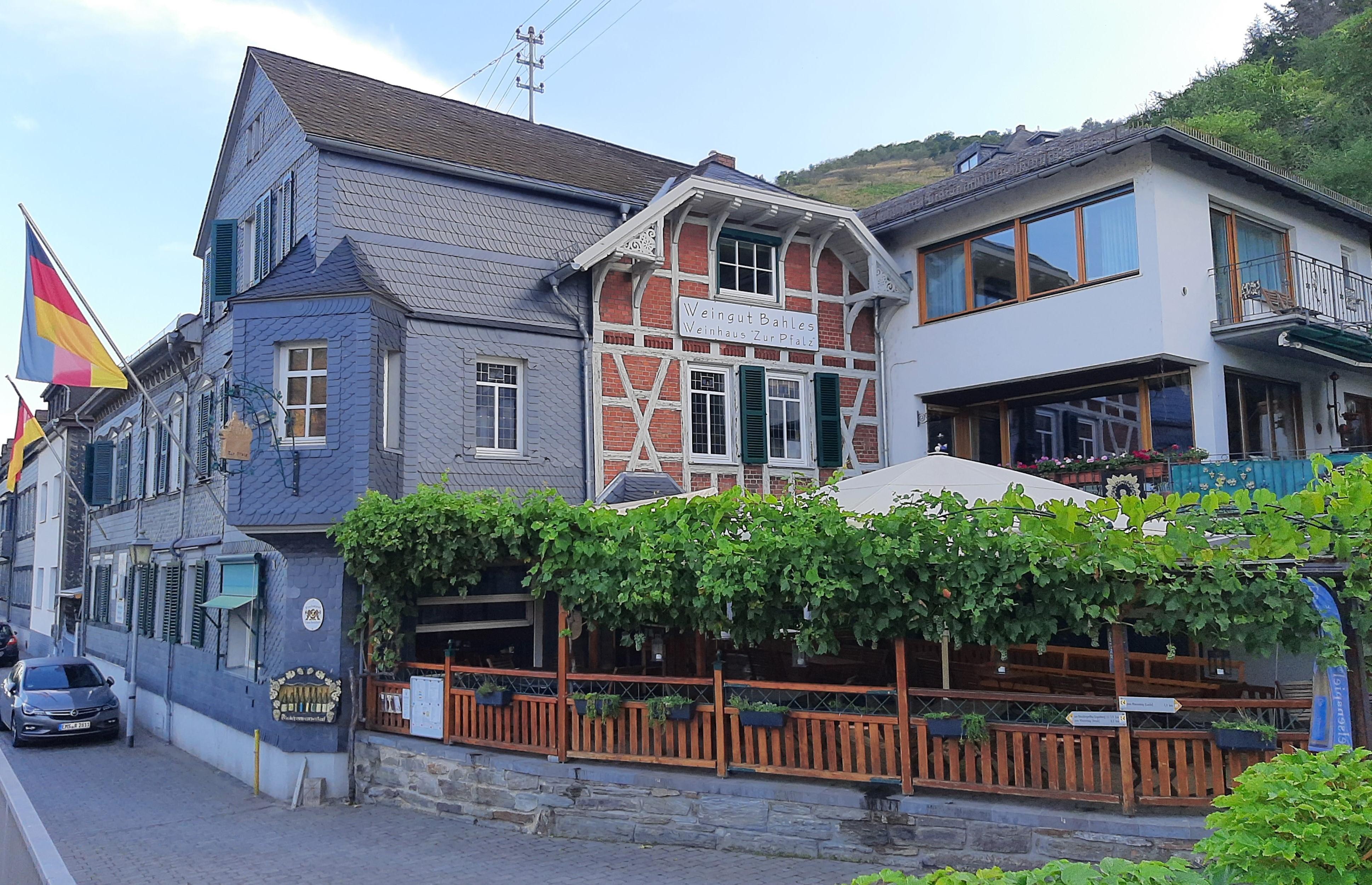 Au WeinHaus Bahles, également appelé "Weinhaus zur Pfalz" (en raison de la vue depuis le restaurant / la terrasse directement sur le château de Pfalzgrafenstein), des invités sont accueillis depuis 1876. Depuis 1912, il est dirigé par la famille Bahles, et aujourd'hui, il comprend également 3 hectares de vignobles en terrasses et une distillerie propre. L'équipe du WeinHaus / domaine viticole Bahles vous propose des plats régionaux assortis à leurs propres vins. Du classique Spundekäs à la boudin noir frit. Mais aussi des plats végétariens ou des "souvenirs" d'autres régions viticoles comme par exemple des ravioles gratinées ou des Flammkuchen seront préparés pour vous. Nous nous réjouissons de votre visite!