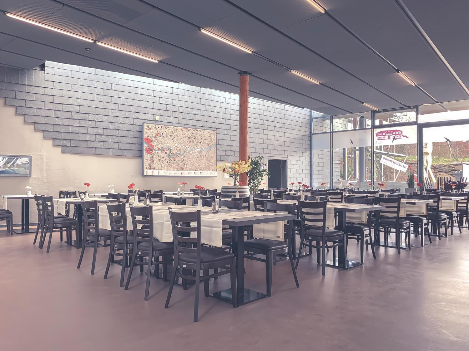 Restaurant "Aan de mythische rots" in de Loreley-toeristeninformatie - met buitenterras - biedt heerlijke snacks, regionale gerechten en dranken aan. In een aangename sfeer kunnen jullie jullie dagtocht afronden, of gewoon even pauzeren. Laat je betoveren door de unieke sfeer van de Loreley. Dompel jezelf diep onder in de legendarische mythe en kijk uit naar een programma van topklasse. Verfijnde culinaire lekkernijen ontmoeten uitstekende wijnen. Laat jezelf, je familie en vrienden betoveren.
