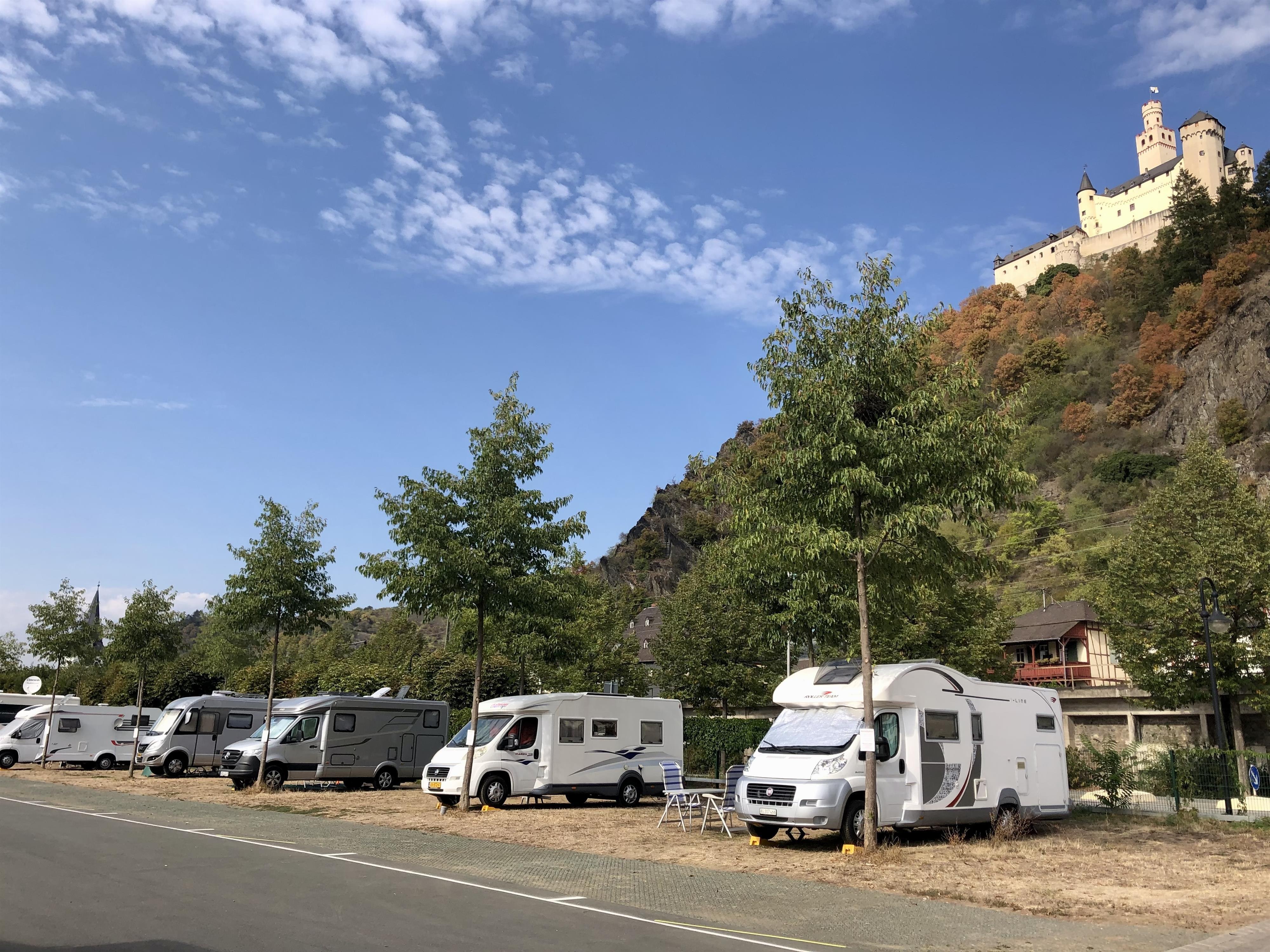 De camperplaats van de stad Braubach, direct gelegen aan de oever van de Rijn, is het ideale uitgangspunt voor allerlei activiteiten.