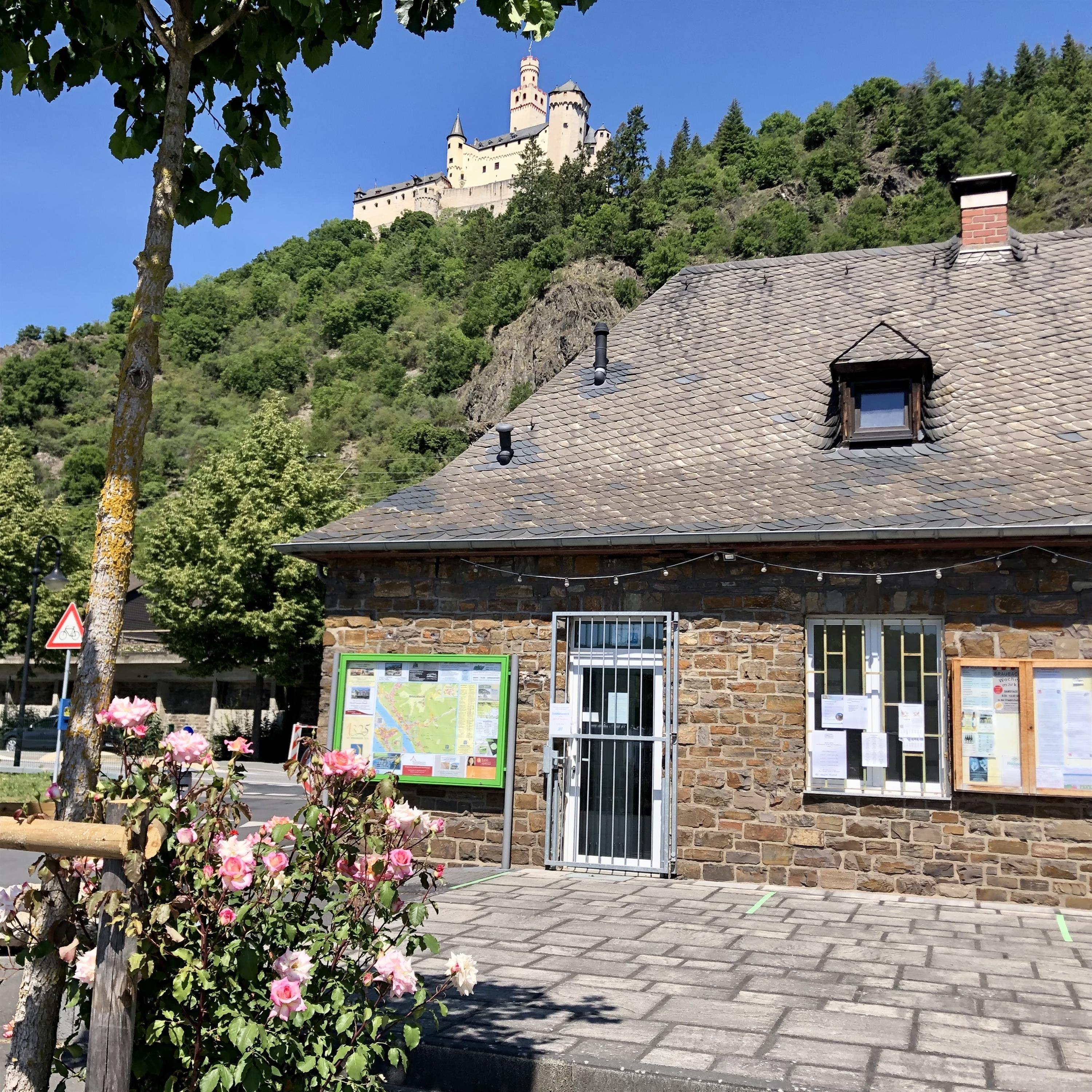 De camperplaats is het hele jaar geopend en is ook toegankelijk voor grote campers. Aankomst en vertrek is de klok rond mogelijk. De camping wordt beheerd door de stad Braubach. De ligging direct aan de Rijn en het indrukwekkende uitzicht op kasteel Marksburg maken het overwegend geasfalteerde terrein tot een geliefde bestemming voor campers van heinde en verre.